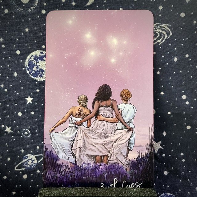 Shared celebration and communal joy. The Three of Cups expanded care outward, reminding me that connection during good times matters just as much as connection during crisis, that joy multiplies when it’s genuinely witnessed.