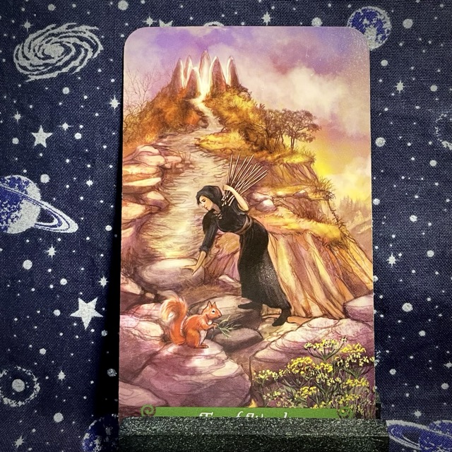 After yesterday’s Queen of Swords cutting through with clarity and discernment, the Ten of Wands feels like the weight of everything I saw clearly but haven’t yet addressed. The Queen helped me name what’s real; the Ten shows me I’m still carrying things I know aren’t mine. There’s a gap here between seeing the truth and acting on it.